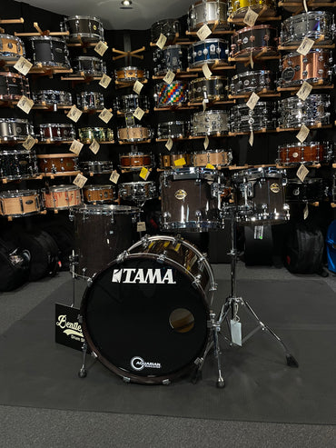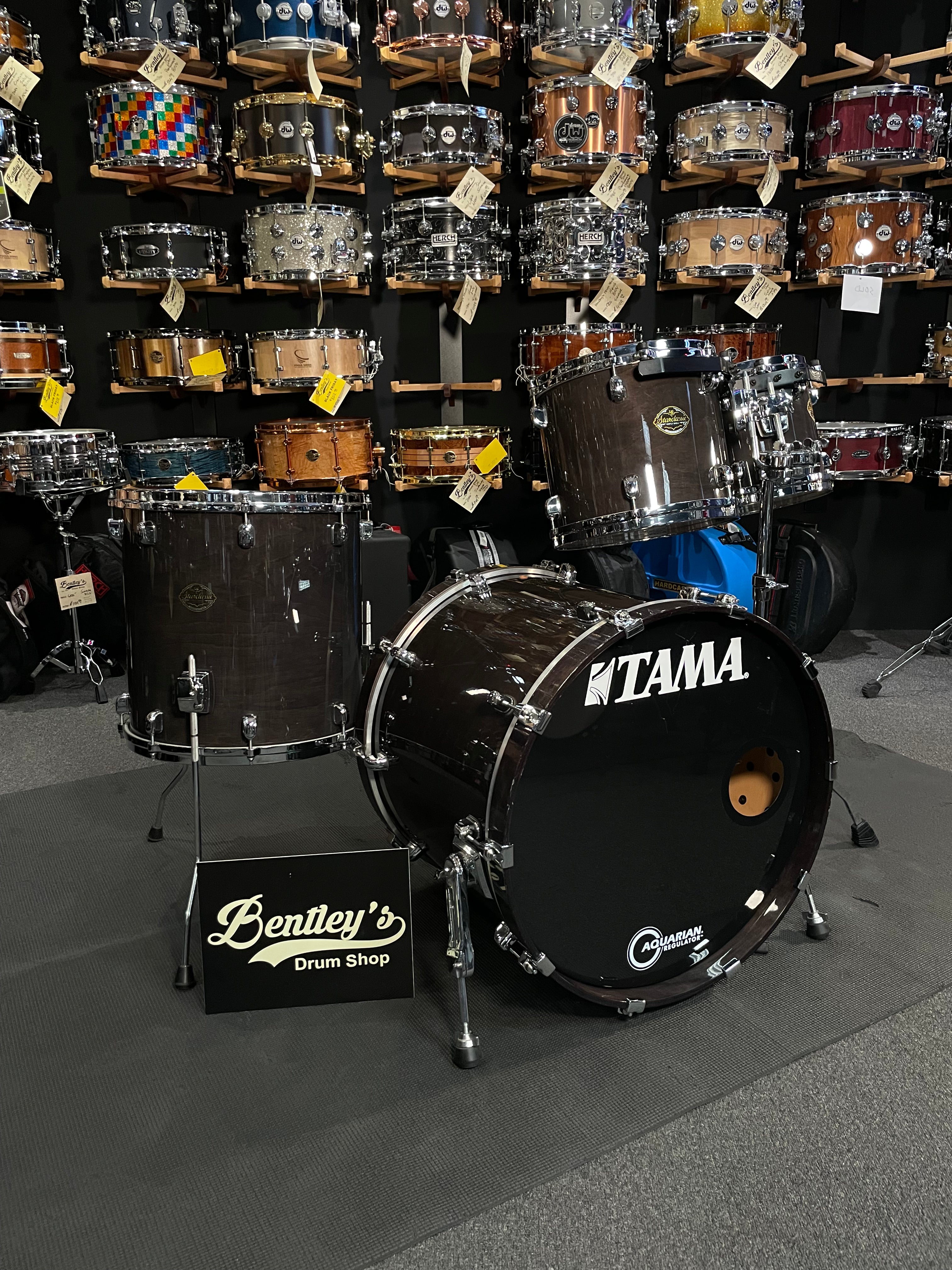 Check Out this Brand-New Gretsch USA Custom 4-Piece 10/12/16/22 Drum Kit Set in Satin Dark Chestnut Duco with the Double-Tom Holder! Gretsch USA Custom Round Badge...