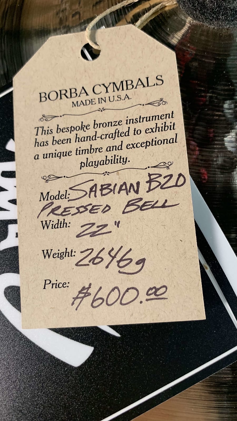 Borba 22" Sabian B20 Pressed Bell Ride 2646g