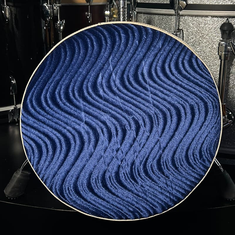 Trono redondo Pork Pie con parte superior de terciopelo azul marino con remolinos y laterales blancos brillantes