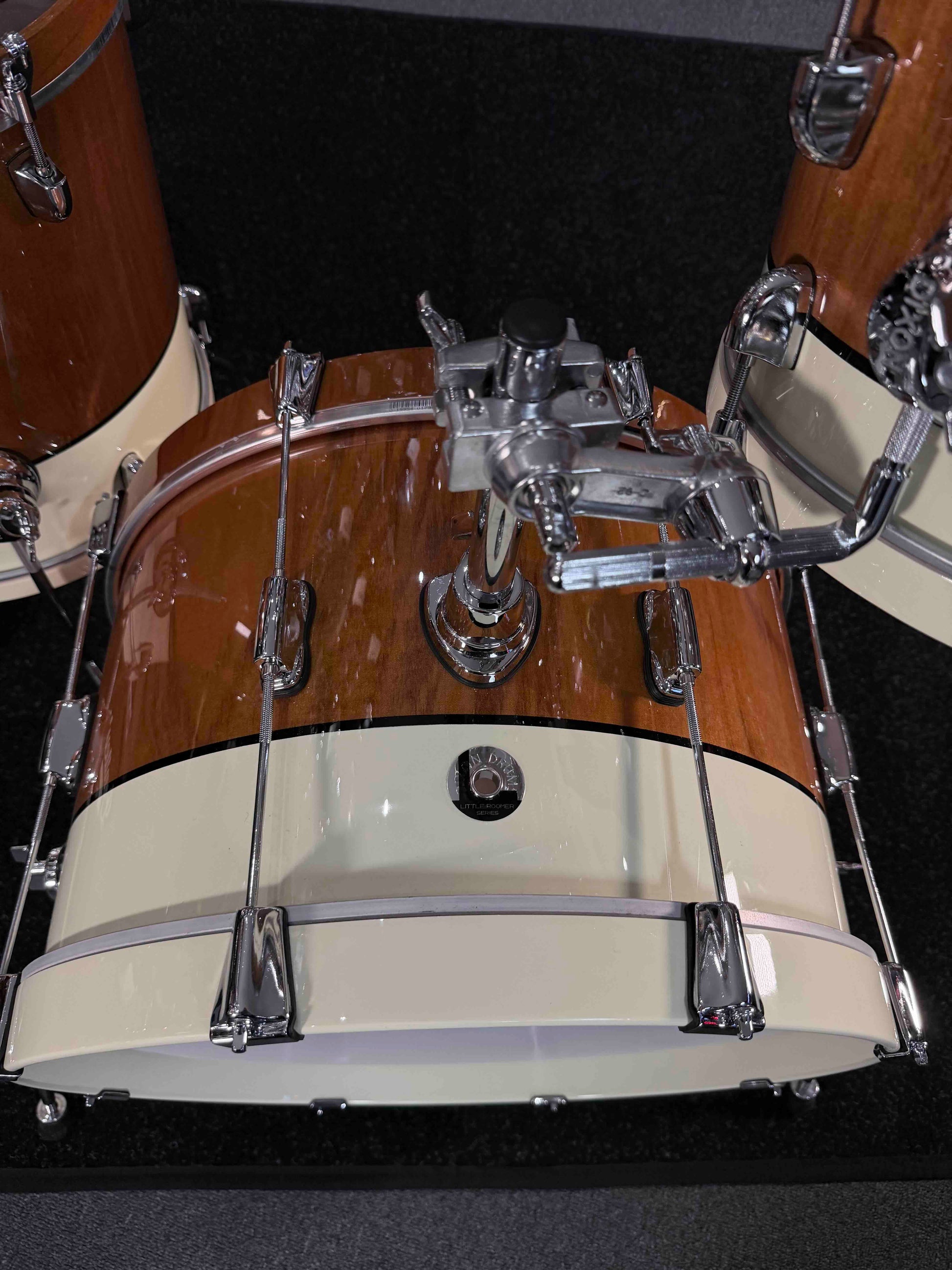 ~BENTLEY'S EXCLUSIVE~ Dixon Little Roomer Select 4-Piece 12/14/16/20 Drum Kit Set in Natural Mahogany to Pearl White with Black Pinstripe