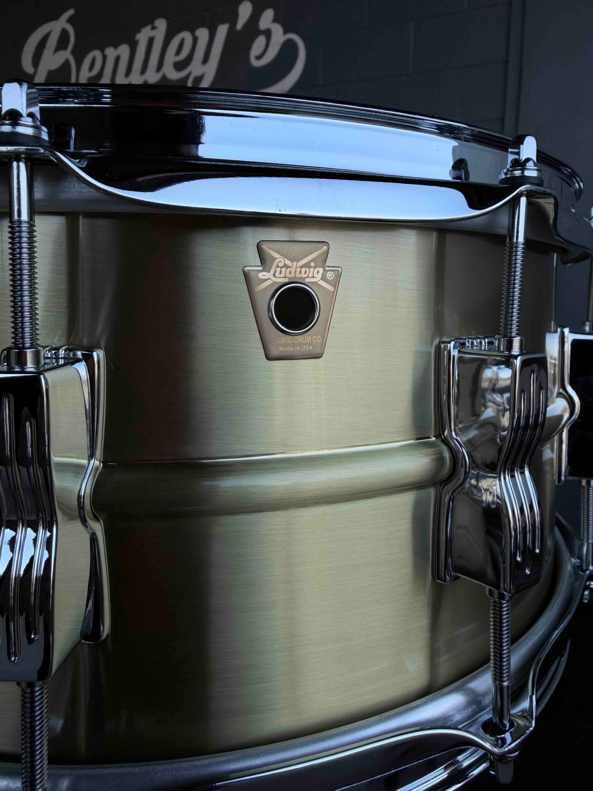 Ludwig Acro-Brass 6.5x14 Snare Drum with P86 Millennium Strainer Throw Off (Displayed at 2026 NAMM Show!)