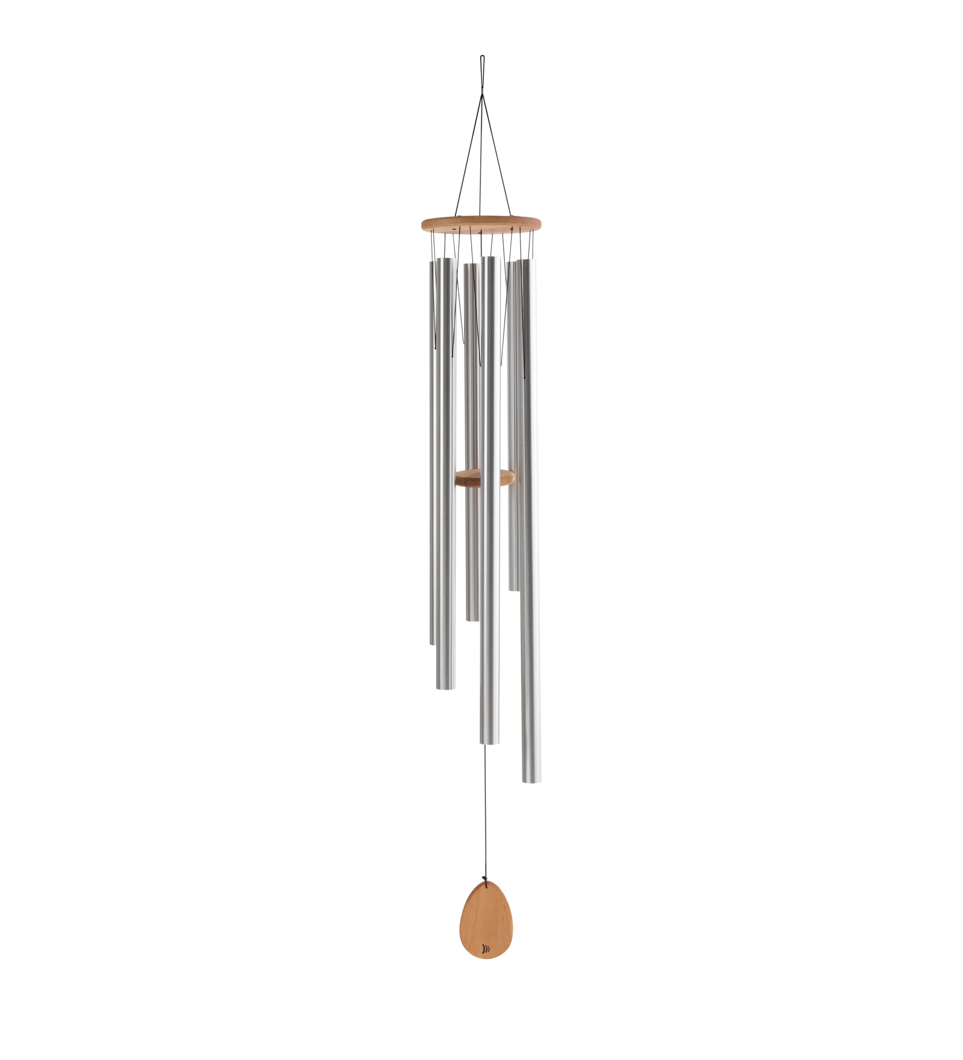 Wind chimes can resonate with the body and soul and have a positive influence on human well-being. Schlagwerk wind chimes are available in different basic tunings. Starting from a fundamental tone, they are tuned in pentatonic tone sequences and thereby receive their individual sound character. Most tunings are based on planetary harmonics, whose basic frequency is converted into audible frequencies by octaving. The wind chimes are characterized by their rich overtone vibrations and harmonic sound patterns. Each Schlagwerk wind chime is tuned with a high precision measuring device.