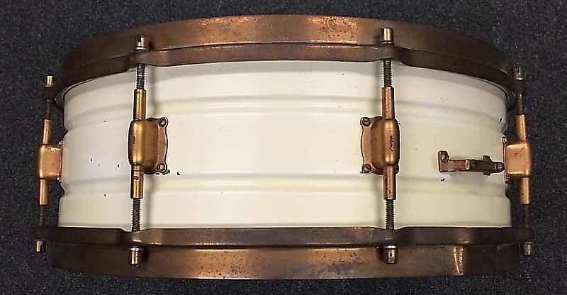 1920's Leedy 5x14" Elite White Beauty Snare Drum w/ Nobby Gold Hardware