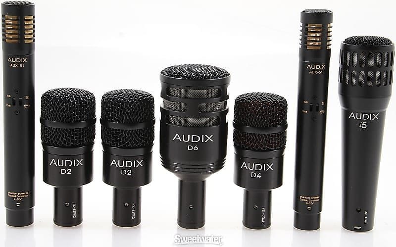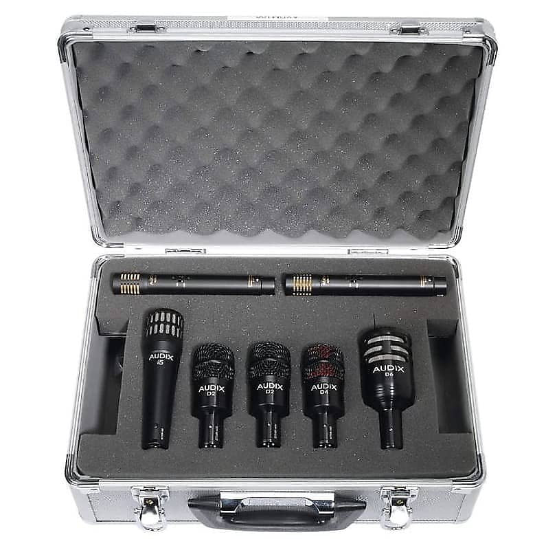 Included in the DP7 drum microphone package is the D6, Audix's flagship kick drum microphone, two – D2 dynamic drum microphones for rack toms, one D4 for floor tom, the i5 for snare and a pair of ADX51 studio condenser microphones for overhead miking. Also included are four D-Vice rim mount clips for the snare and tom microphones, and three heavy duty tension fit microphone clips for the other three microphones. Everything is conveniently packaged in a foam-lined aluminum road case for safe keeping when the microphones are not in use.
