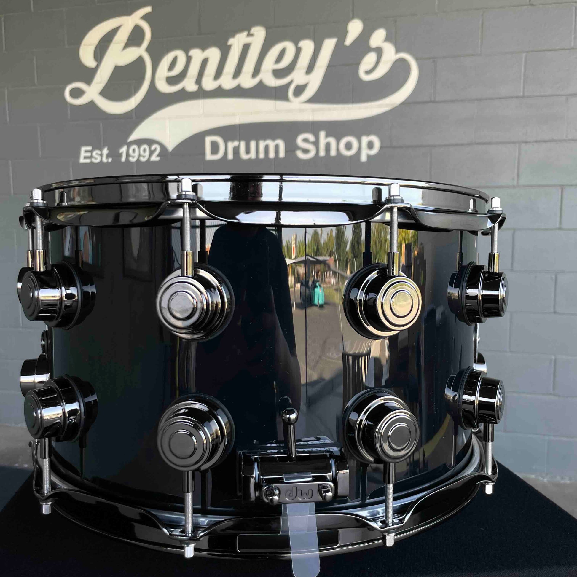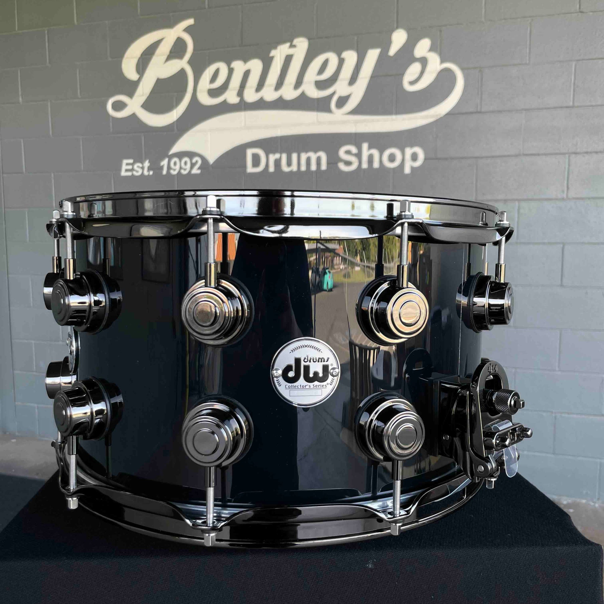 Check Out this Brand-New DW Collector's Series 333 Pure Maple 8x14 Snare Drum in Gloss Black FinishPly with Black Nickel Hardware!