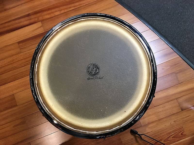 It has a 30" fiberglass shell with a steel ring embedded at the bearing edge for added strength and stability, Comfort Curve II Rims with natural rawhide heads, and reinforced LP Heart side plates with 5/16" diameter tuning lugs and Patented LP ProCare Shell Protectors.