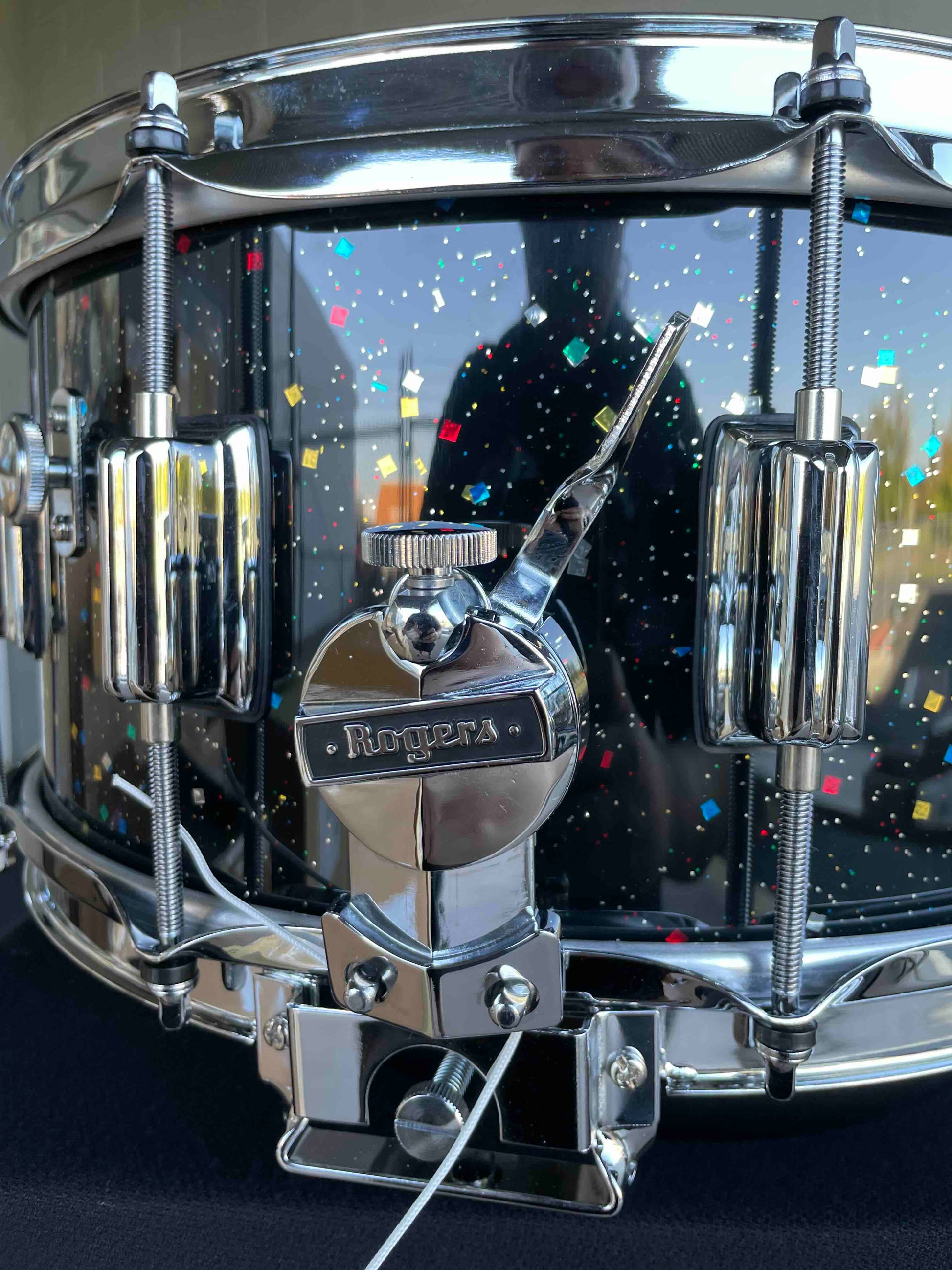 Check Out this Beautiful, Brand-New Rogers Dyna-Sonic 6.5x14 Custom Built Snare Drum in Mardi Gras Lacquer!