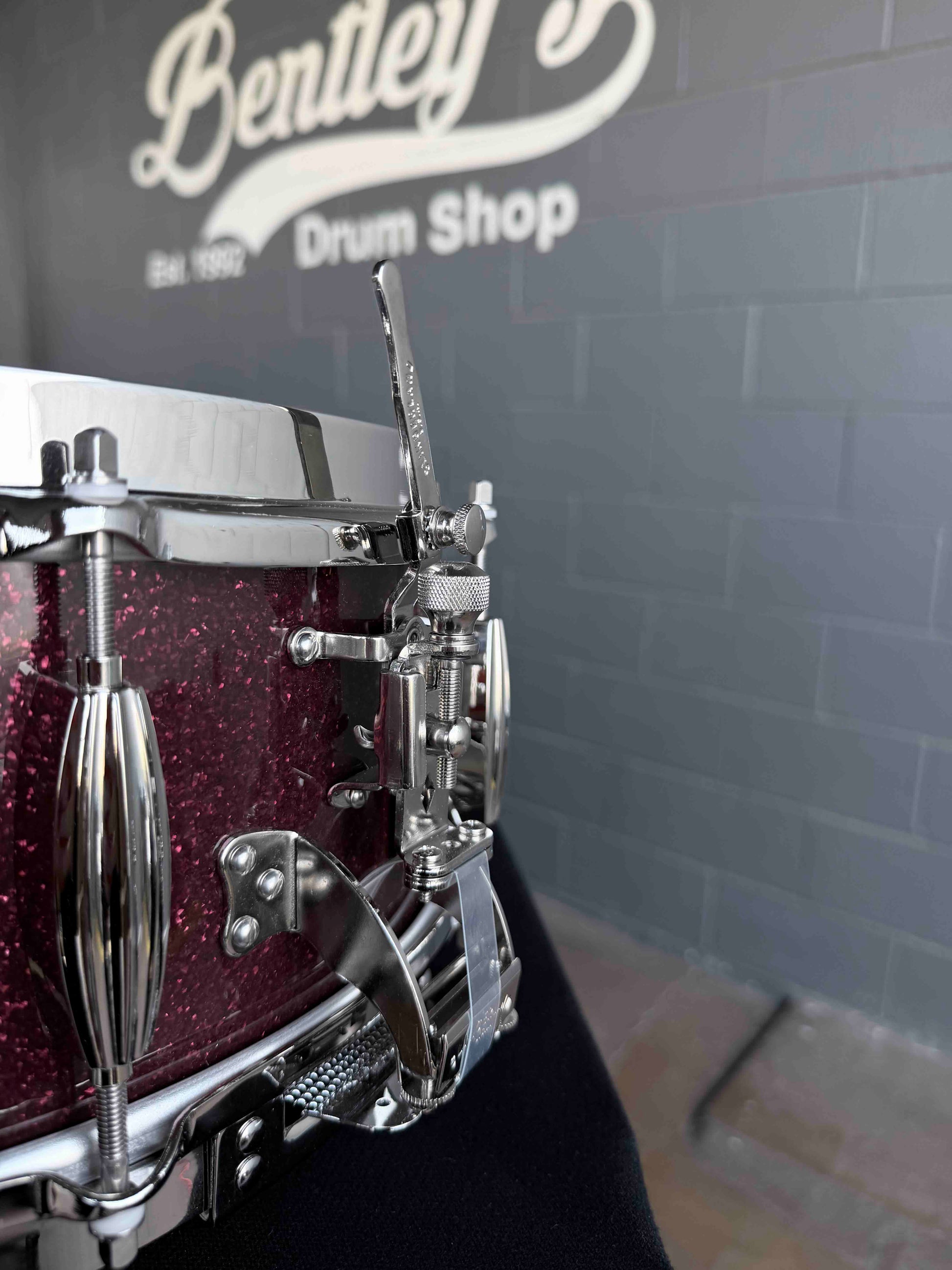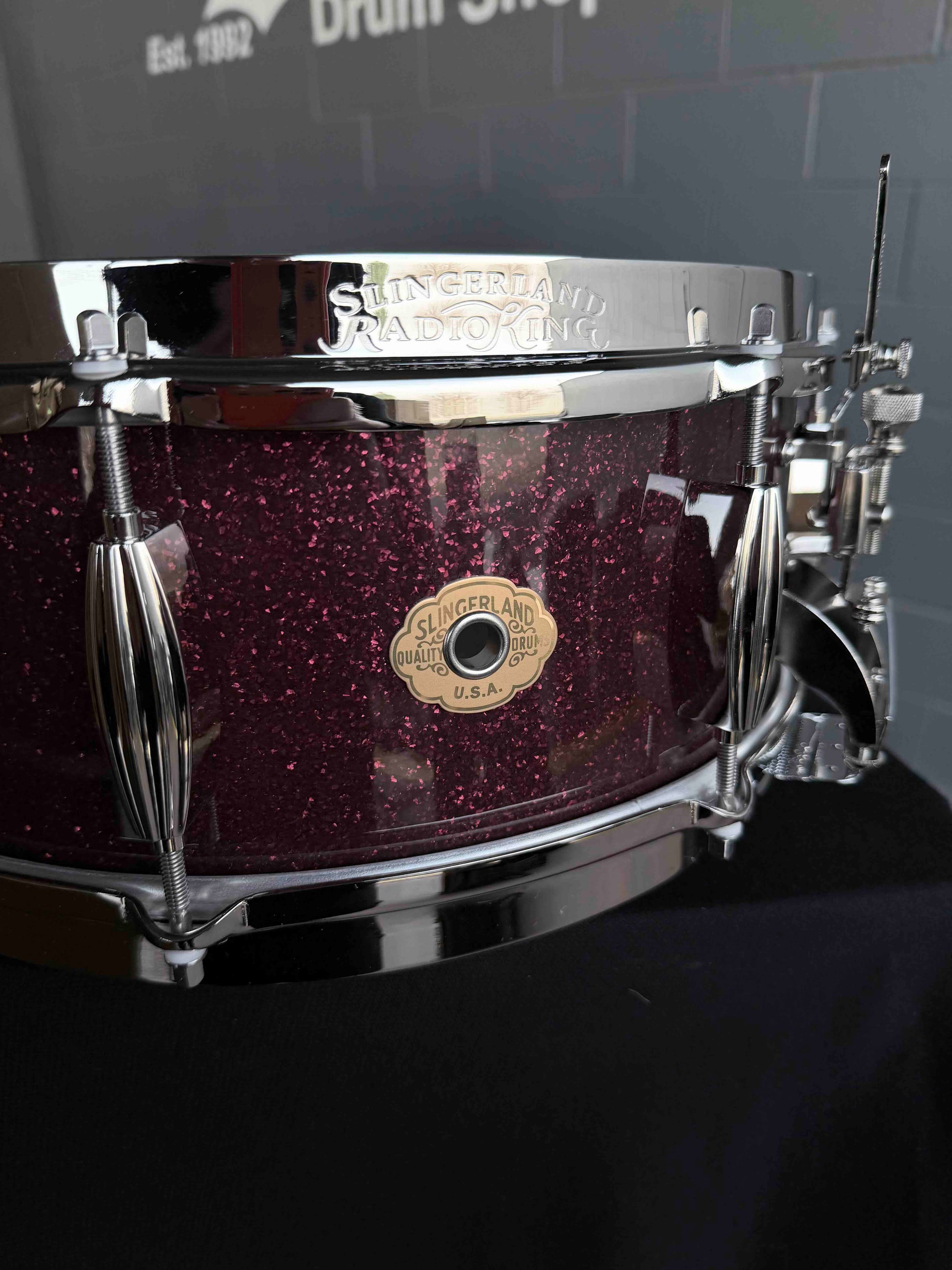 ~NEW!~ Slingerland RadioKing Solid Shell Maple 5.5x14 Snare Drum in Maroon Glass Glitter with Nickel Hardware